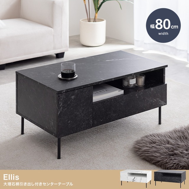 【幅80cm】大理石柄引き出し付きセンターテーブル