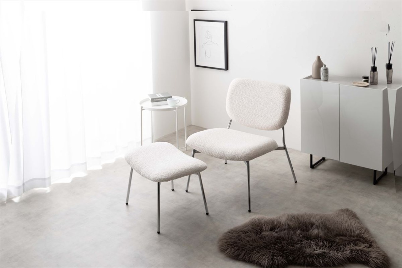 リラックスタイムを特別に演出する【2点セット】ラウンジチェア+スツール!心地よい座り心地のラウンジチェアは、ゆったりとしたデザインで、読書やお昼寝にもぴったり。スツールは足置きとしてだけでなく、サブテーブルとしても活用でき、インテリアの幅を広げます。