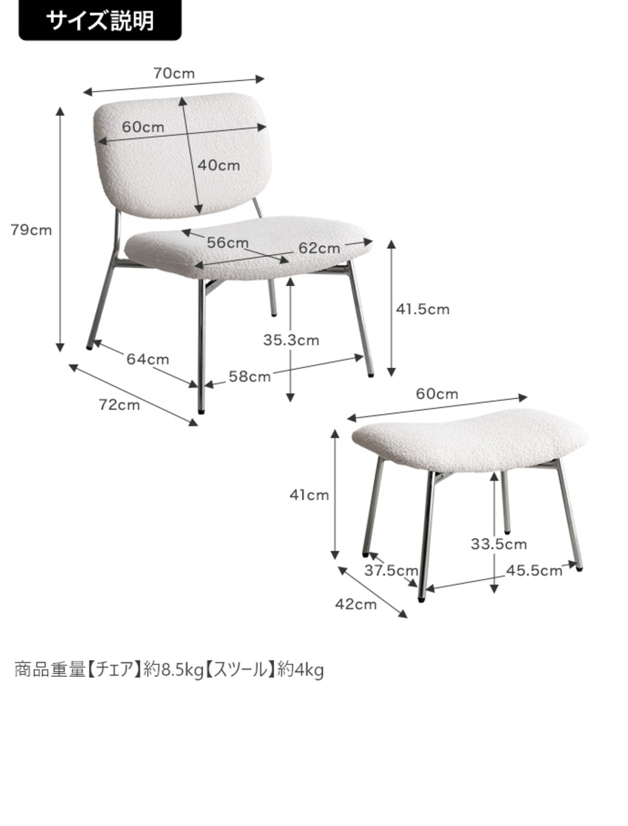 スツール仕様: ファブリック(ポリエステル)、ウレタンフォーム、スチールフレーム