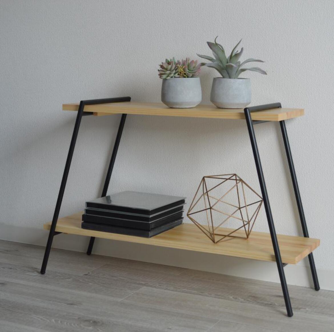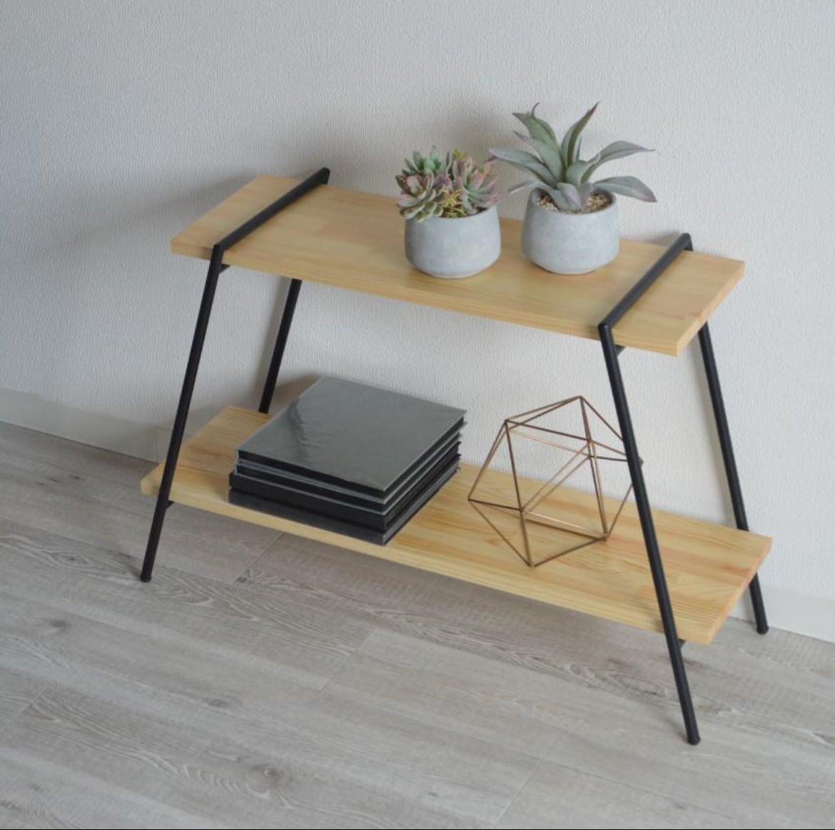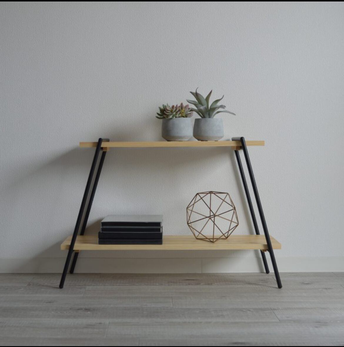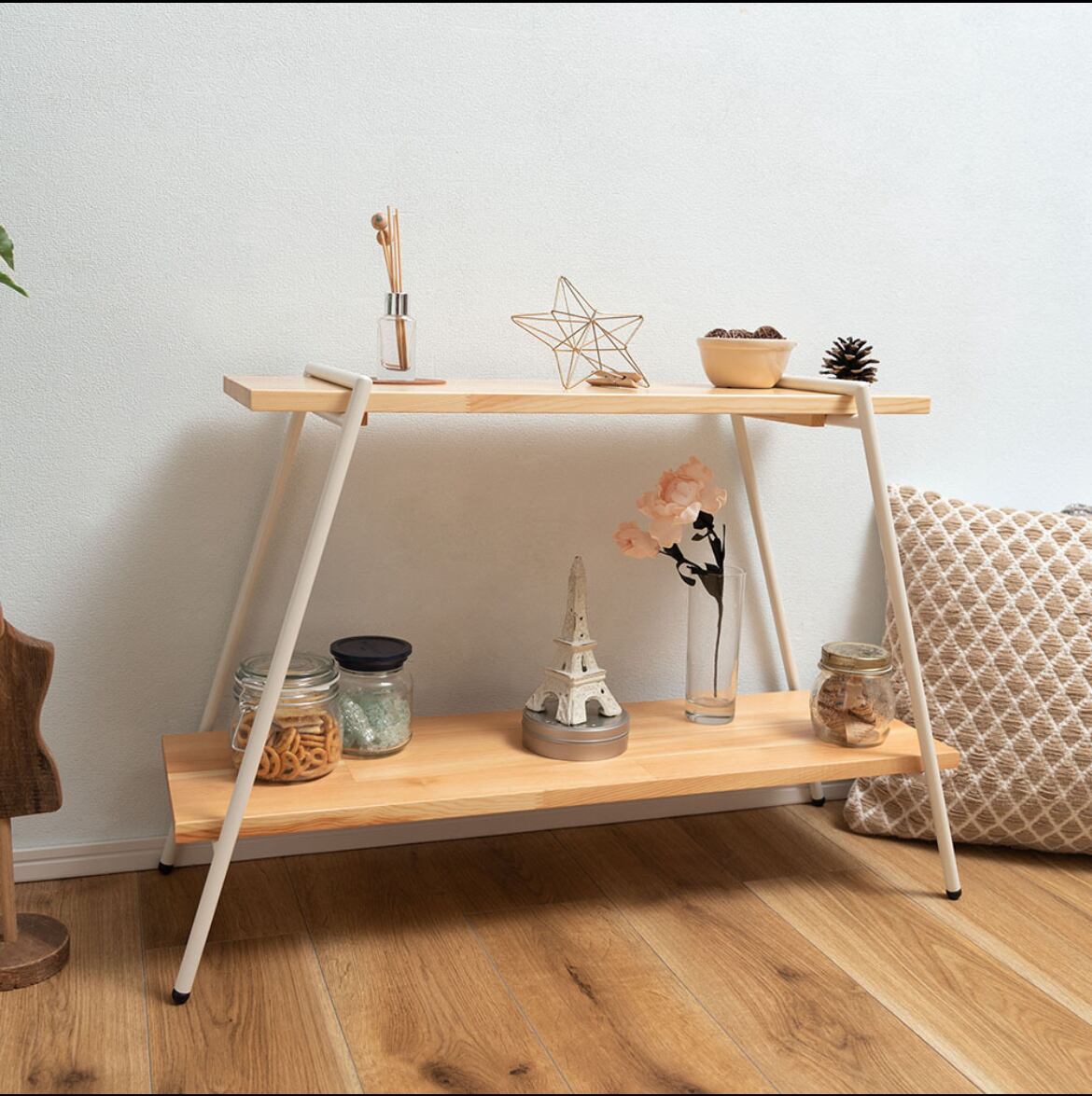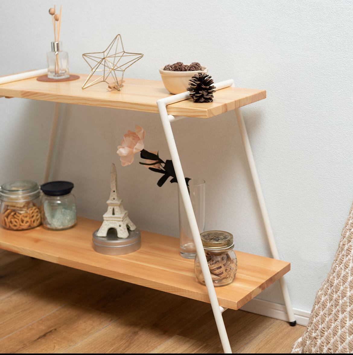 アイアンの脚に木板をセットするだけのシンプルな構造のラック。