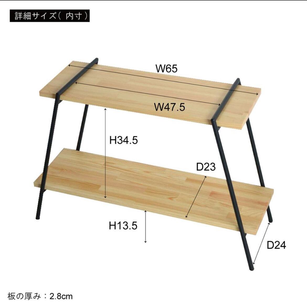 オープンラック アイアンレッグ 2段 棚 木製 シェルフ