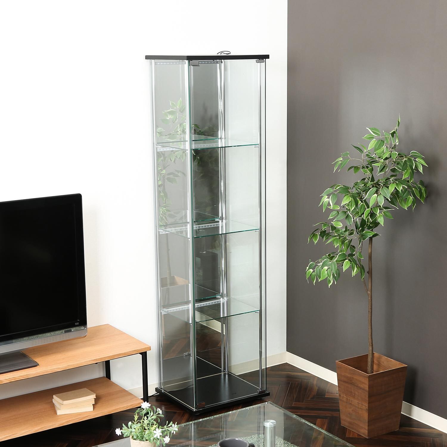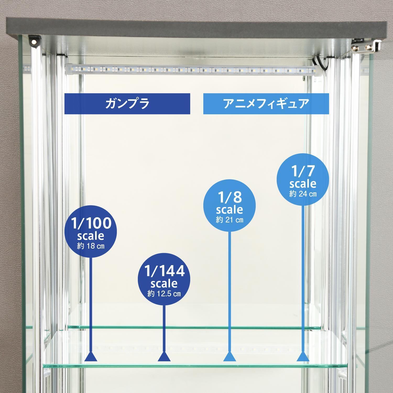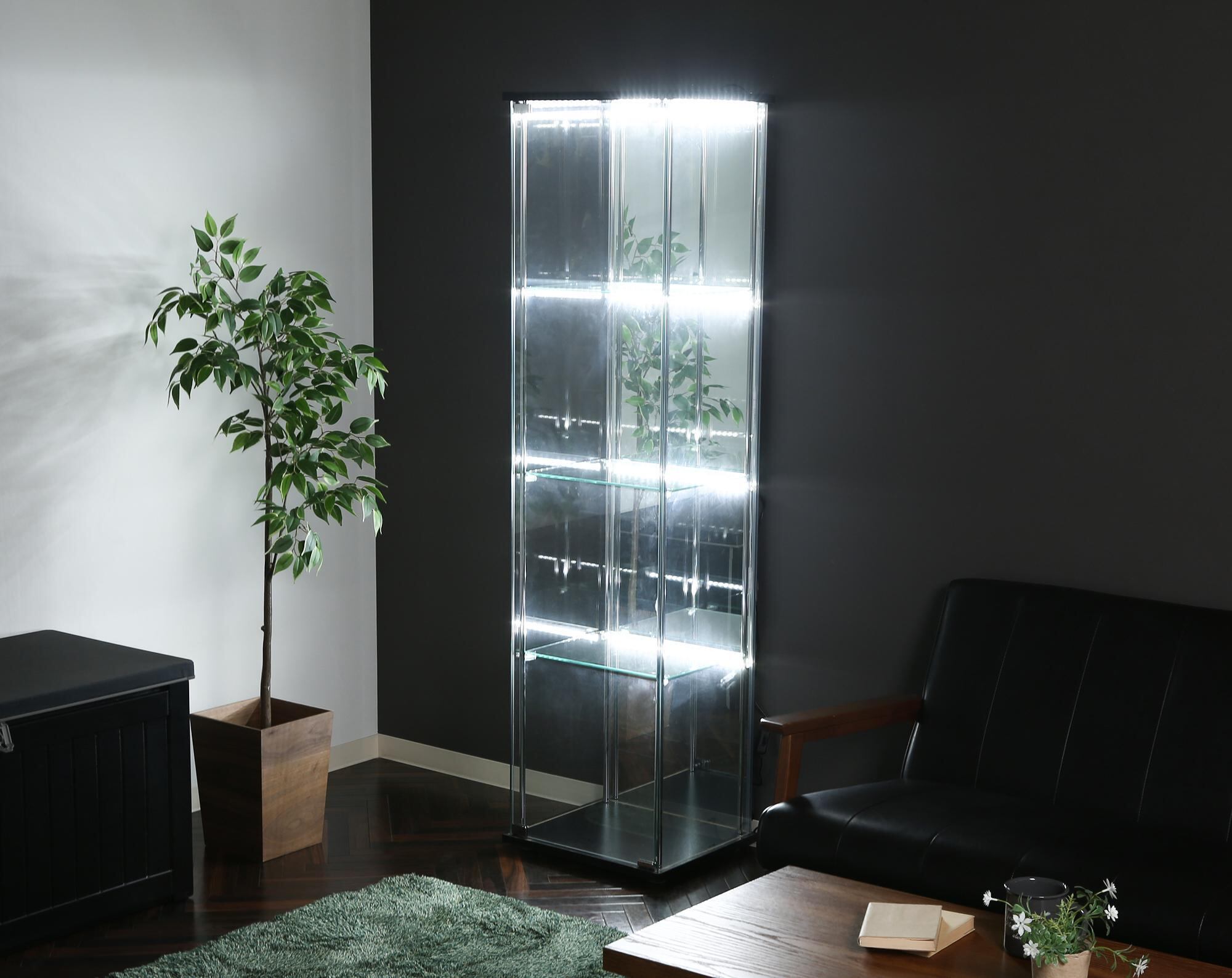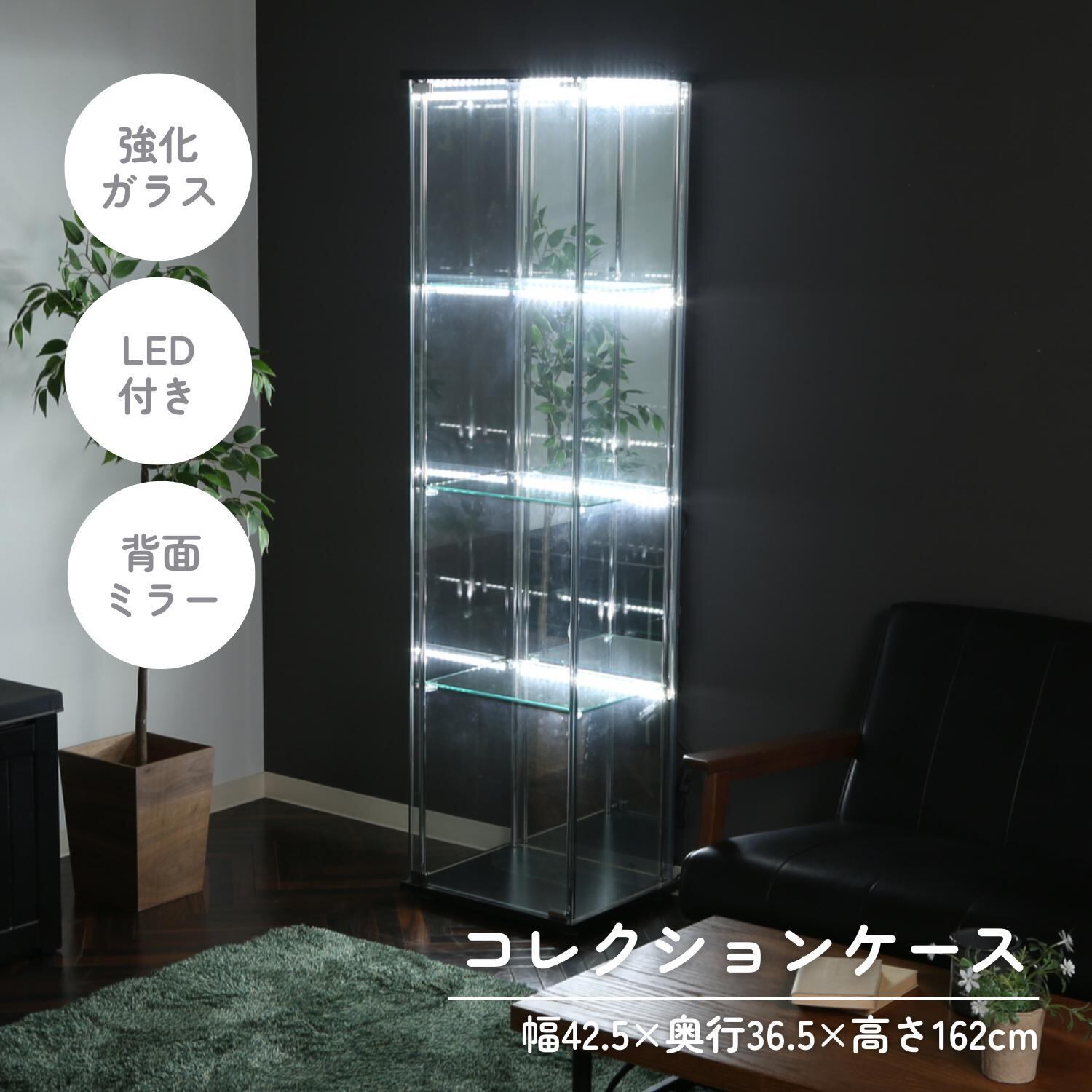 ガラスコレクションケース 4段(背面ミラー) LED