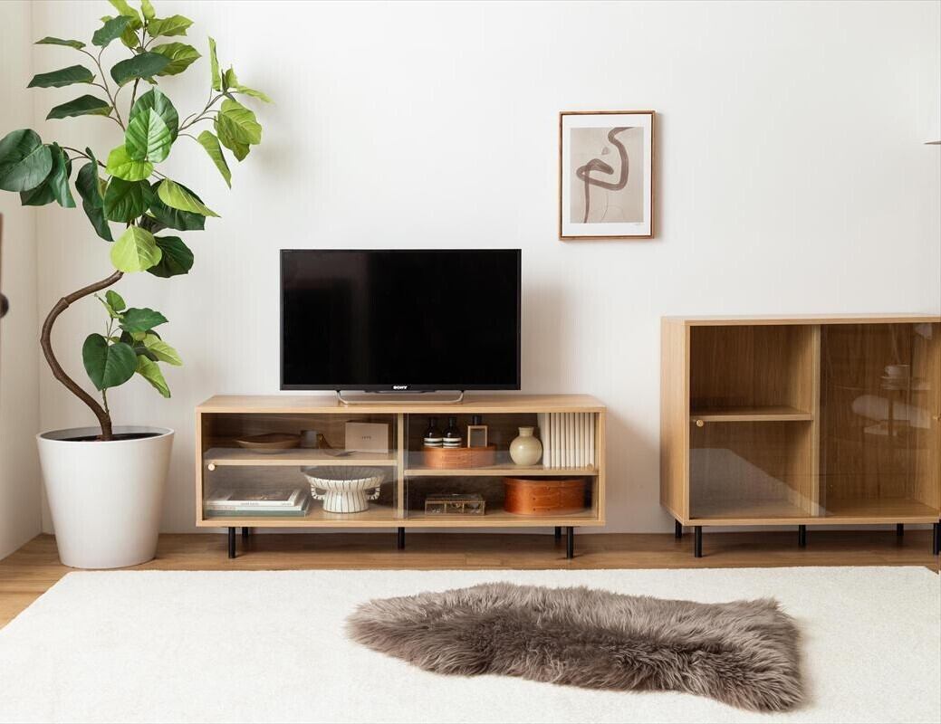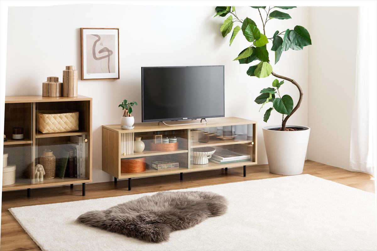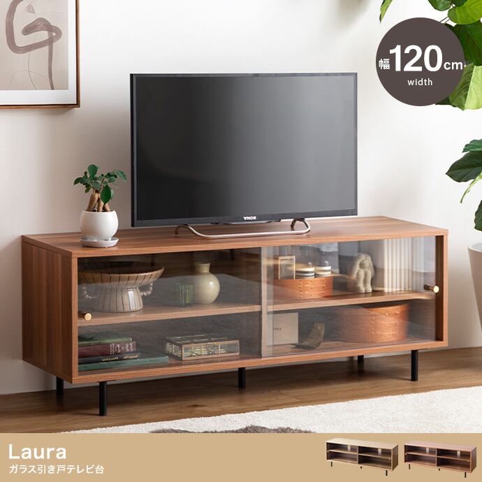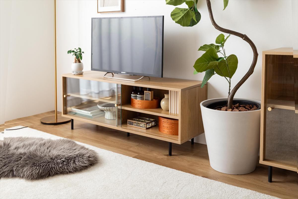 幅120cm】 ガラス引き戸テレビ台