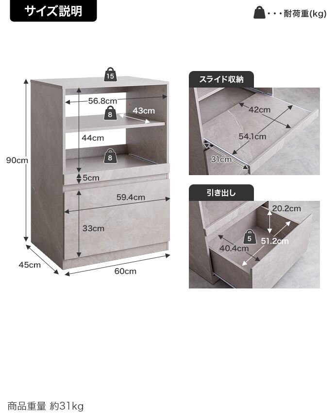 【幅60cm】コンパクトキッチン収納