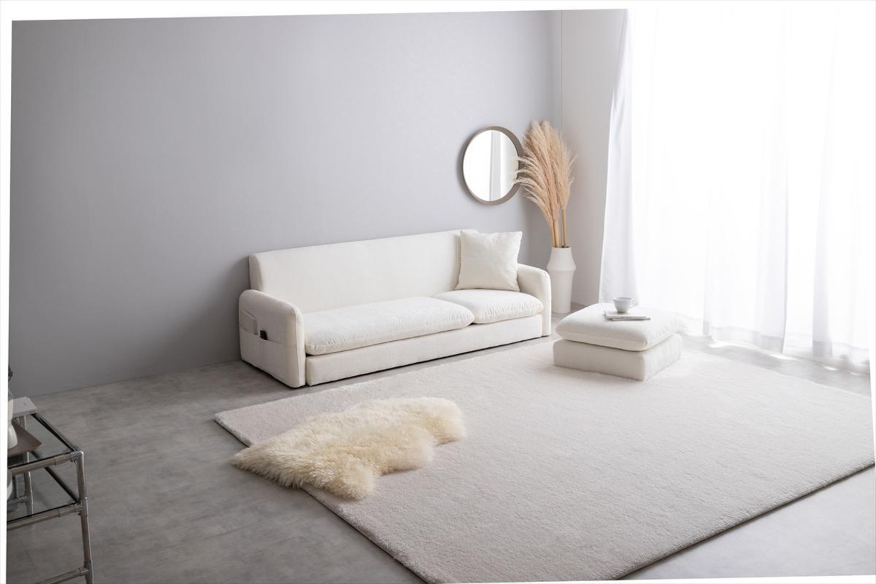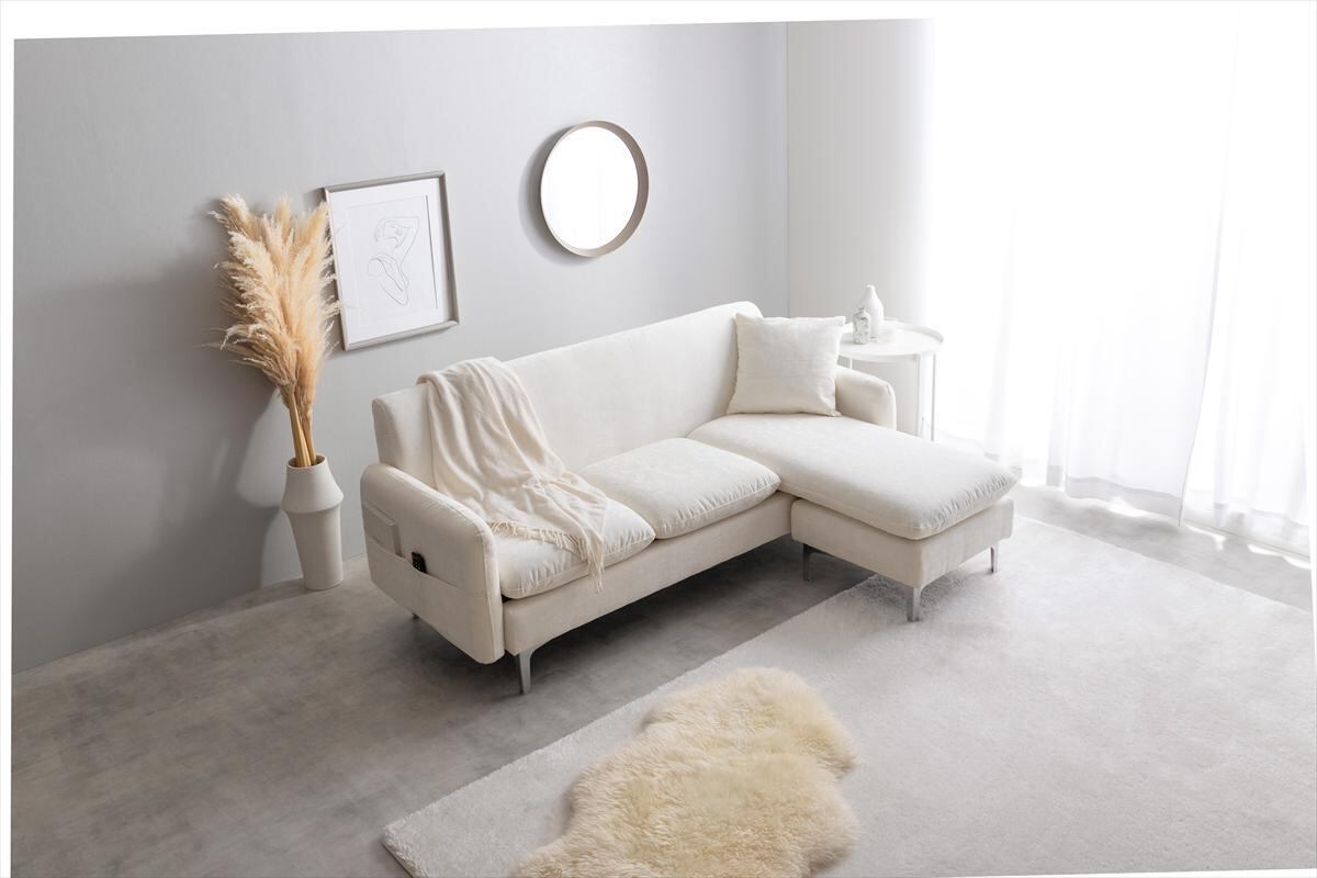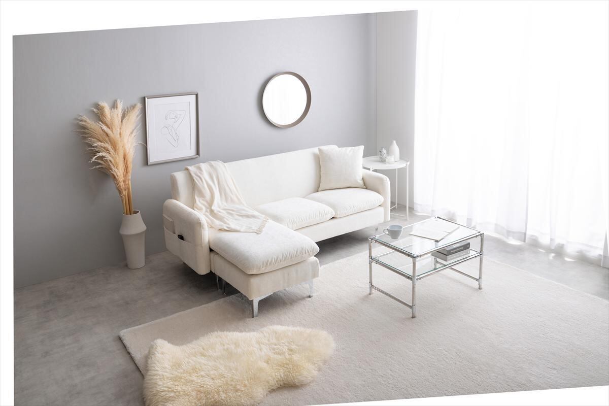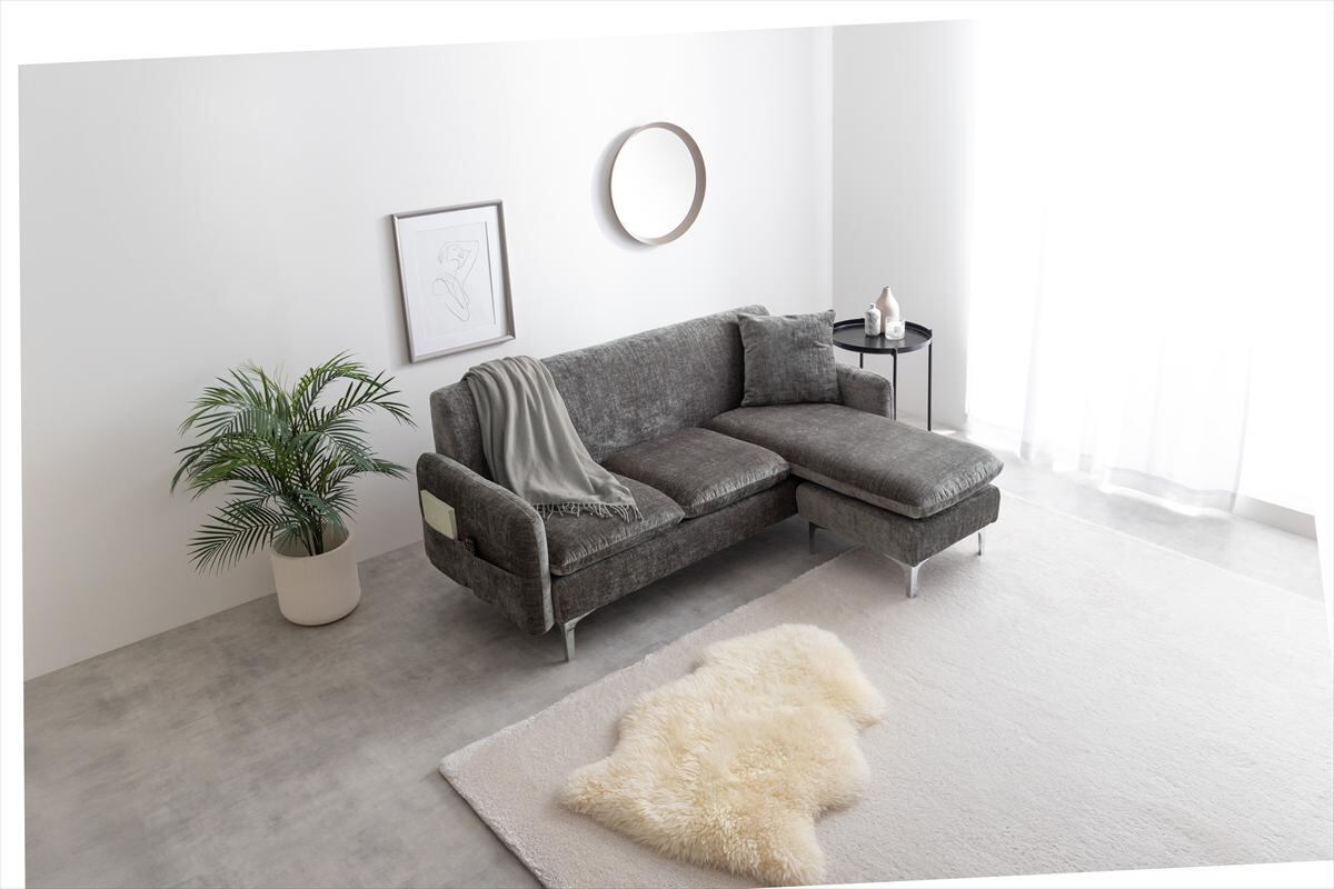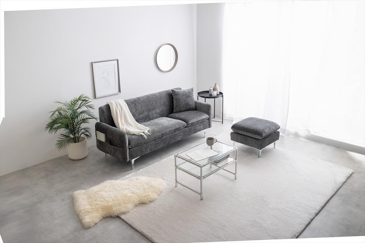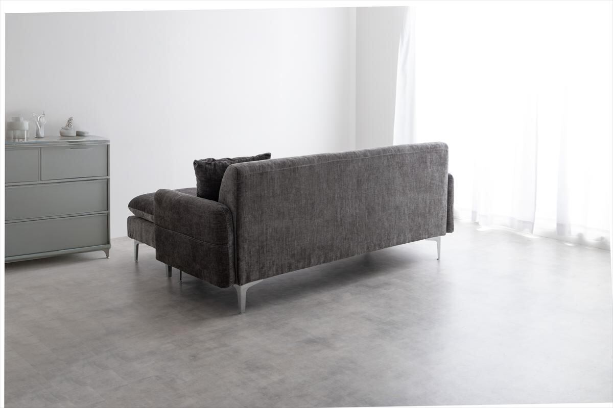 上品なファブリックとシルバー脚が洗練された空間を作る3人掛けカウチソファ
