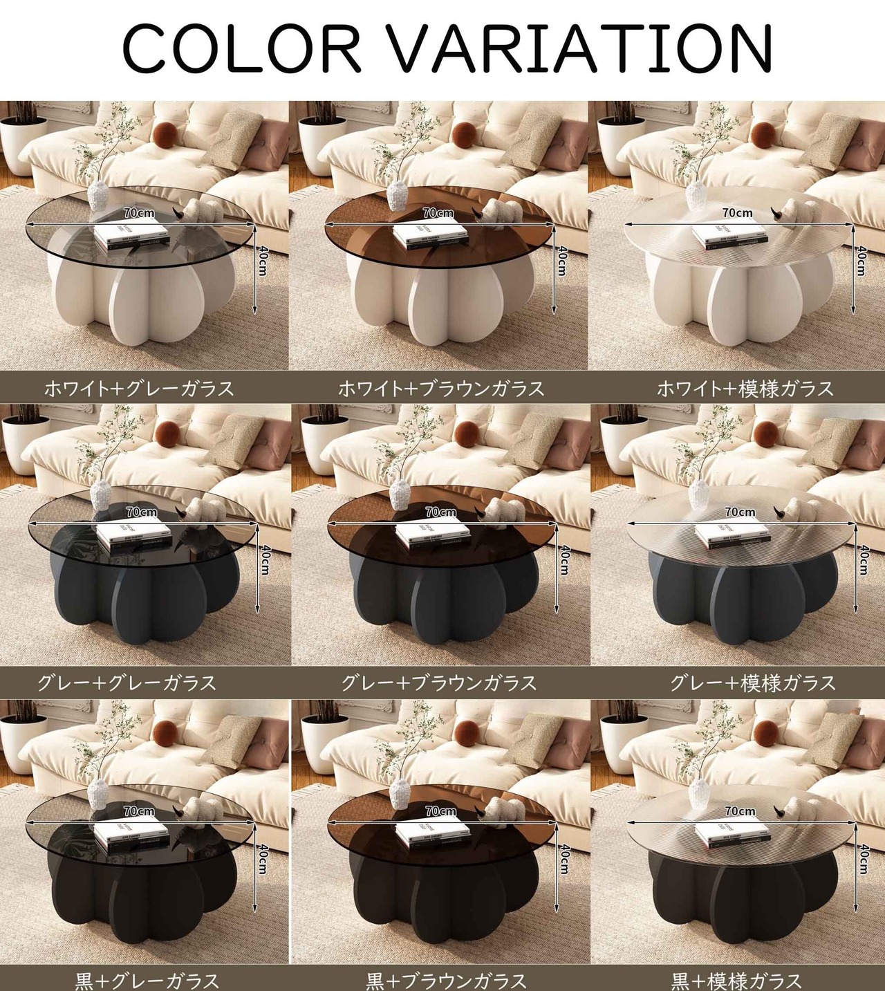 無垢材 木製 80/40cm ガラストップ ラウンドテーブル リビングテーブル センターテーブル モダン カフェ風 オーバル