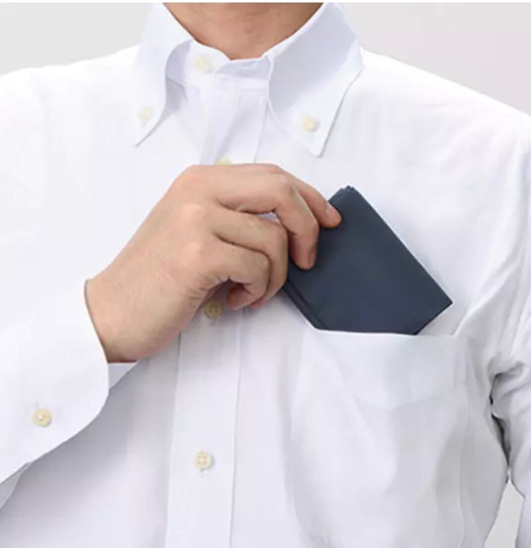 格子状にプリーツ加工が施されていて、簡単にカードサイズ相当まで折り畳むことができます。