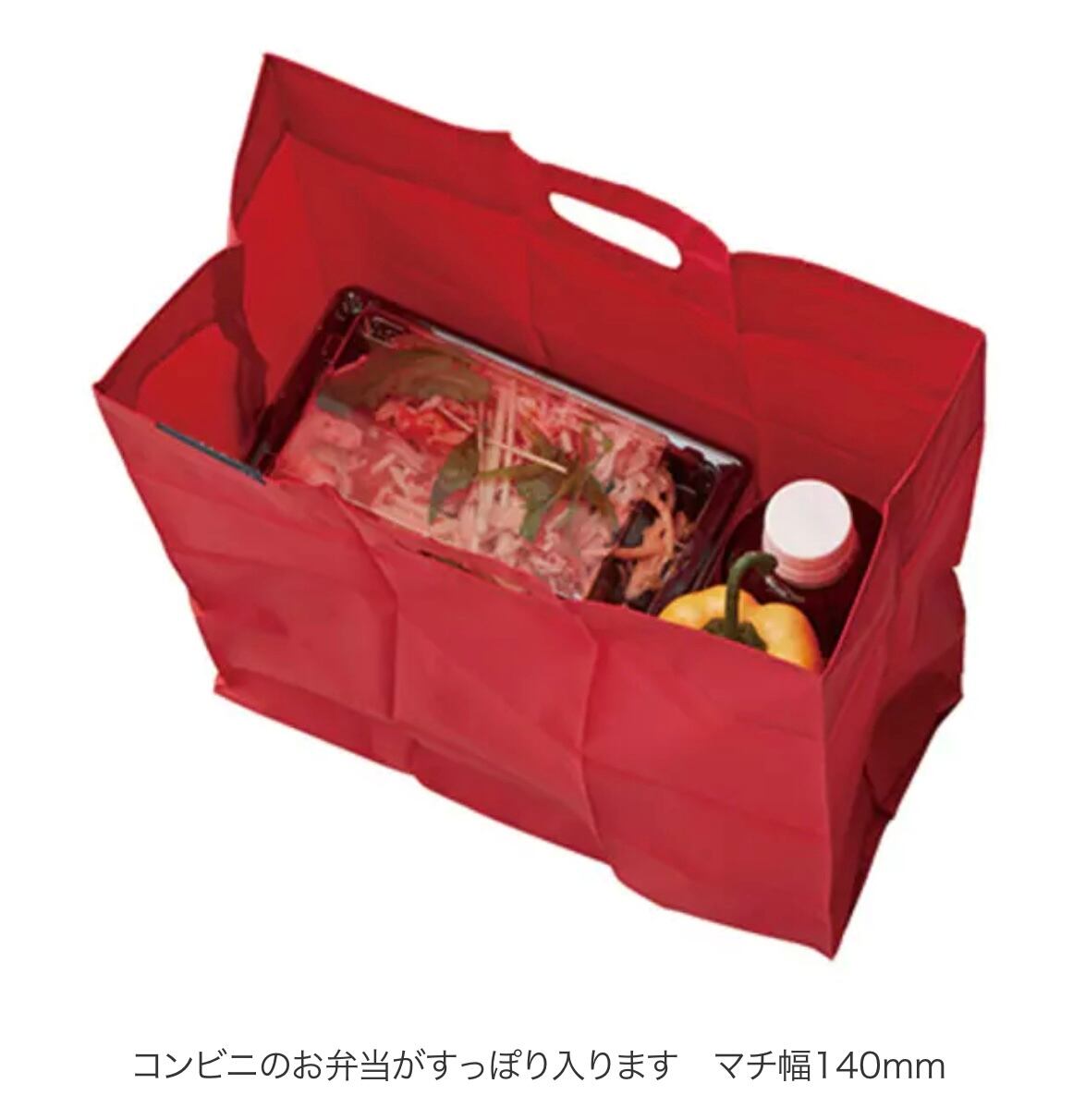 マチも14cmと幅広いので、コンビニでのお買い物用のエコバックや、お弁当、ボトルの持ち運びにもちょうど良いサイズ