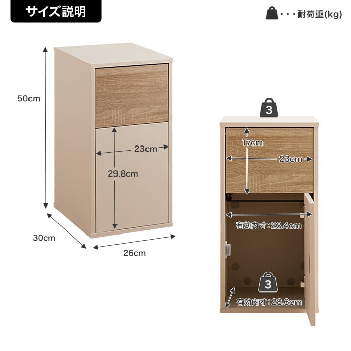 幅26cm×奥行30cm×高さ50cm