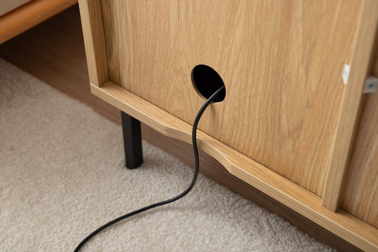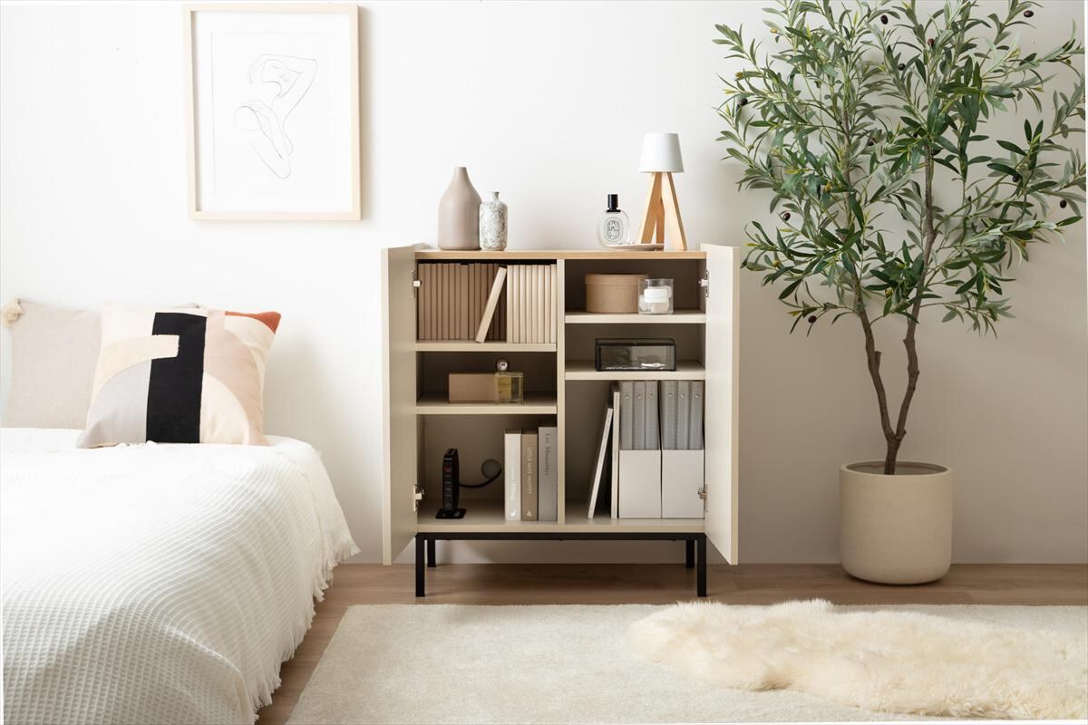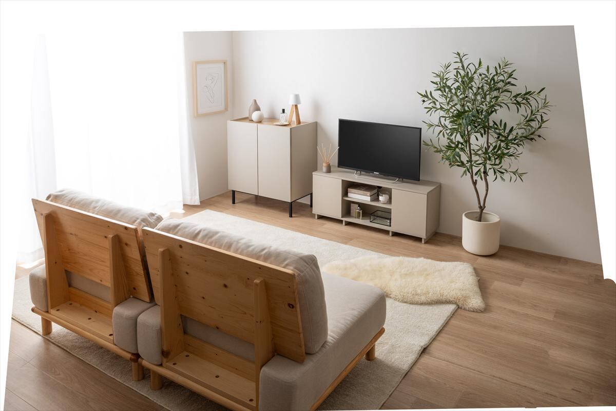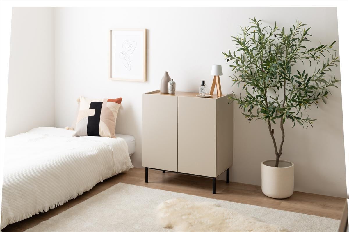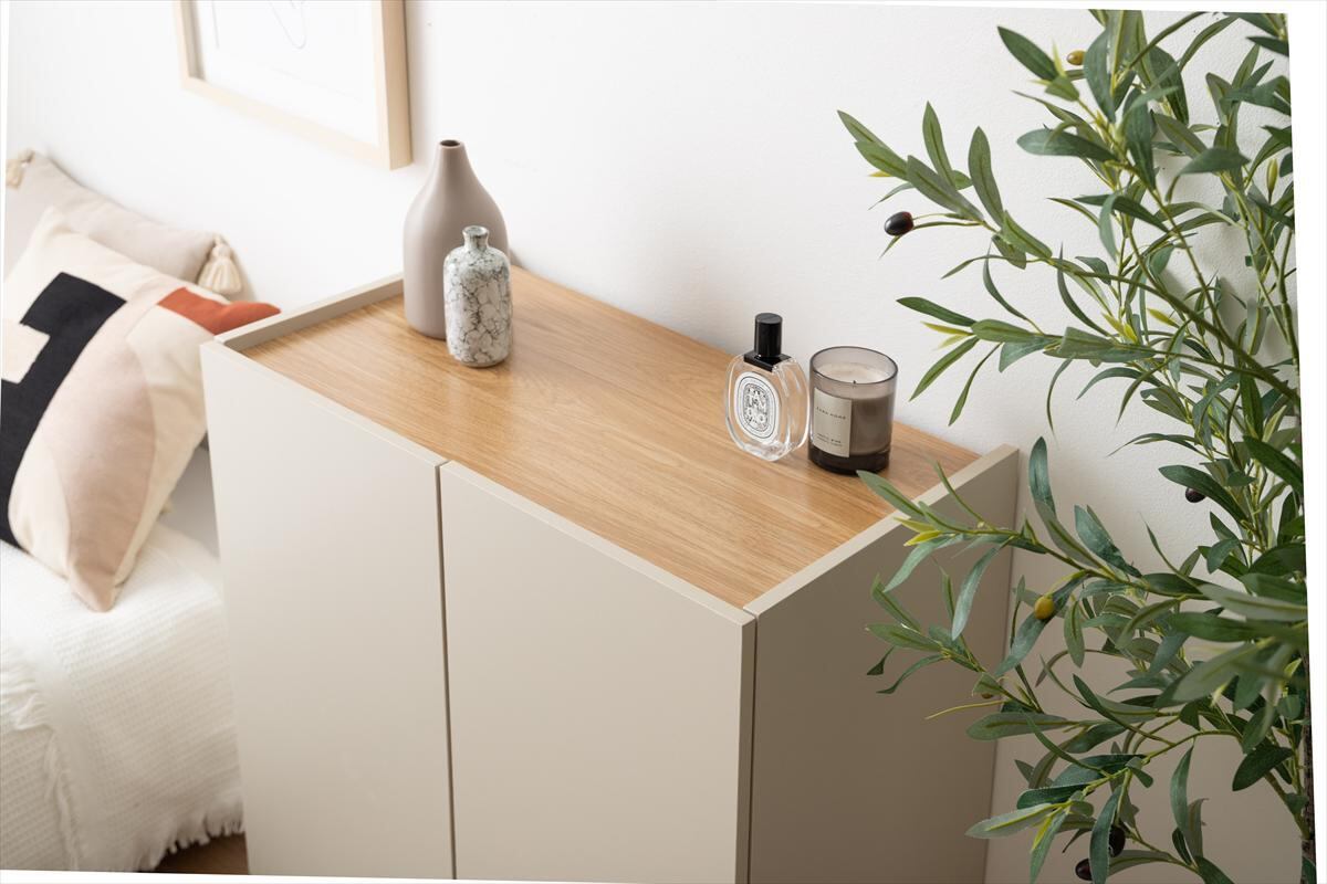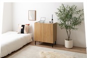 木目×無地のバイカラーが美しい、空間を彩るキャビネット