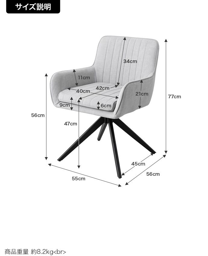 幅55cm×奥行56cm×高さ77cm(座面高:47cm)