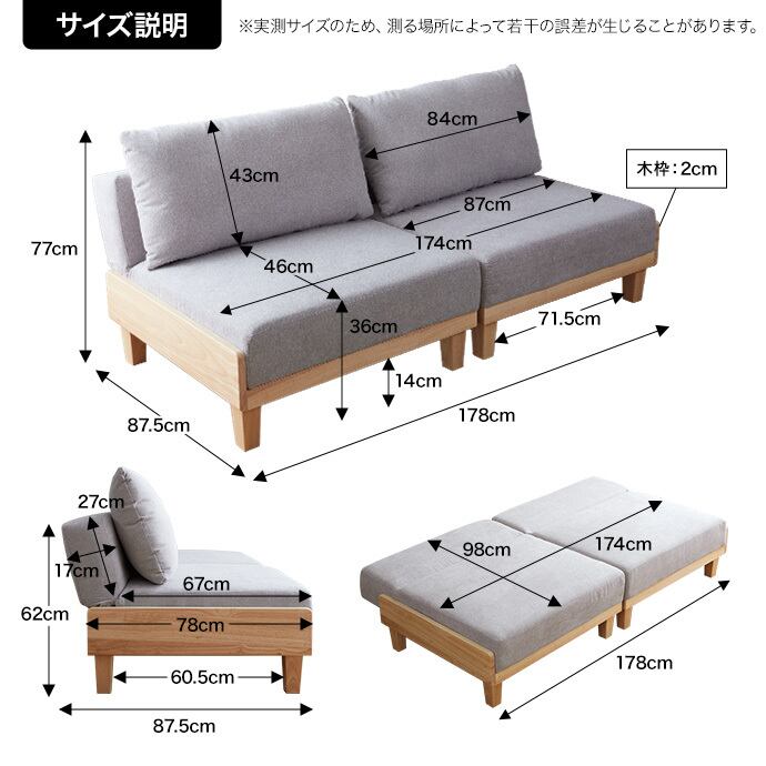 【ソファ時】幅178cm×奥行87.5cm×高さ77cm(座面高36cm)