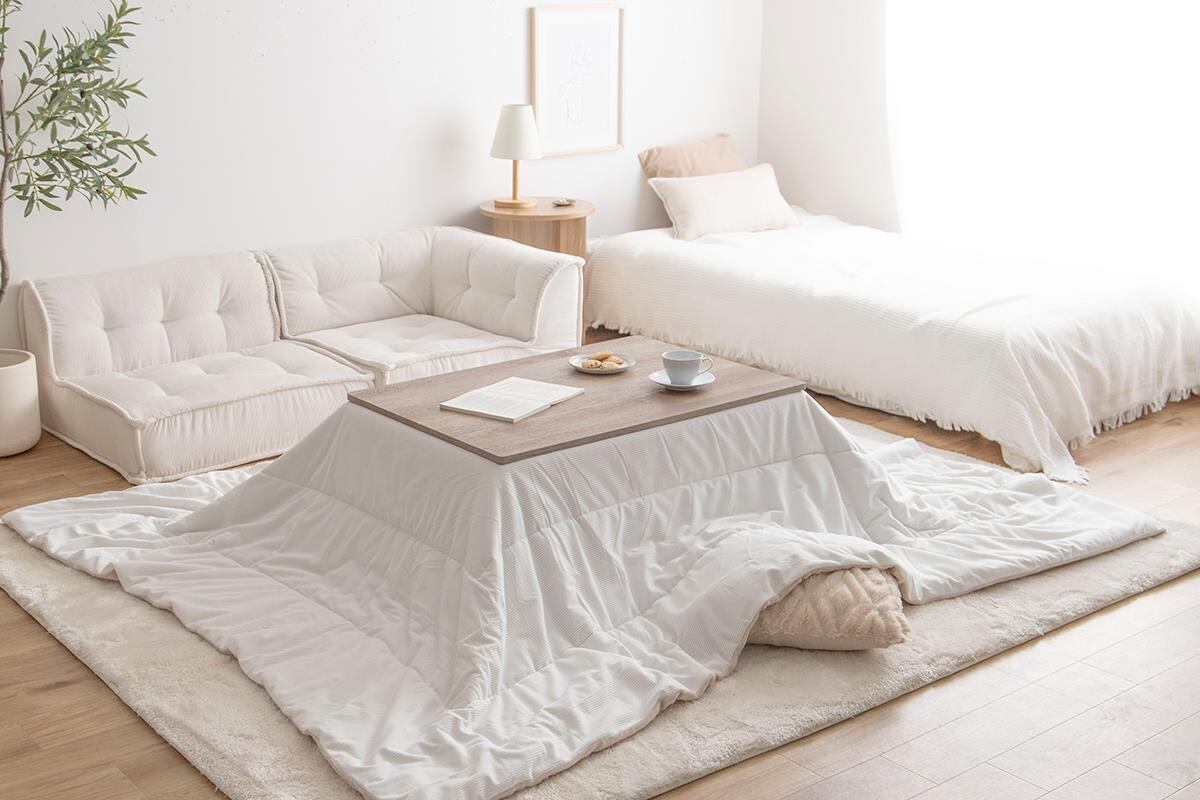 見た目も肌触りも暖かいこたつテーブル&コーディロイ生地こたつ布団2点セット