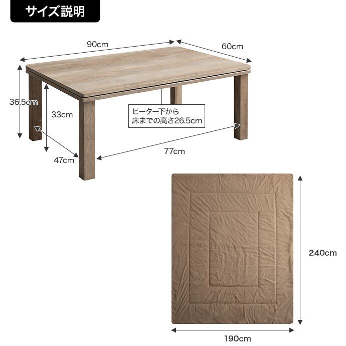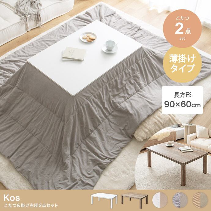 【長方形:天板 90cm×60cm】こたつ&掛け布団2点セット