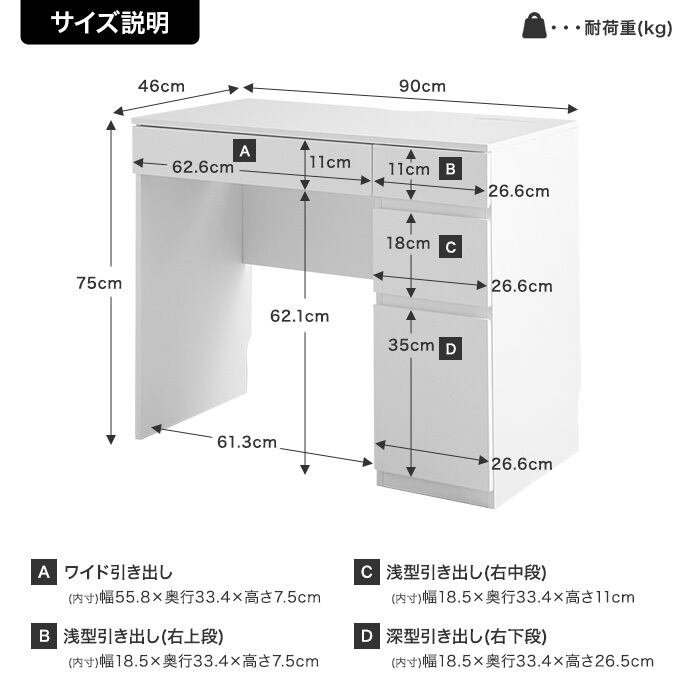 デザインも機能性もスマートにまとまった引き出し付きコンパクトデスク