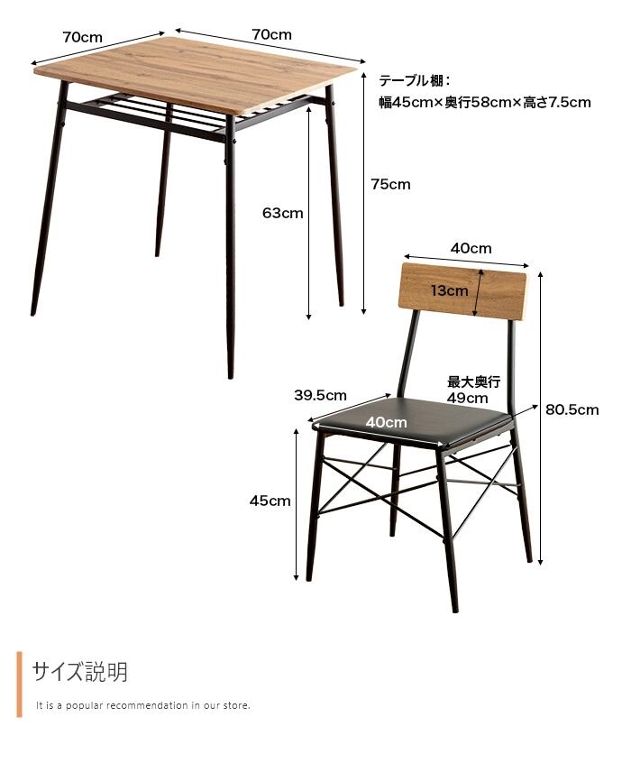 【チェア】幅40cm×奥行49cm×高さ80.5cm(座面高:45cm)