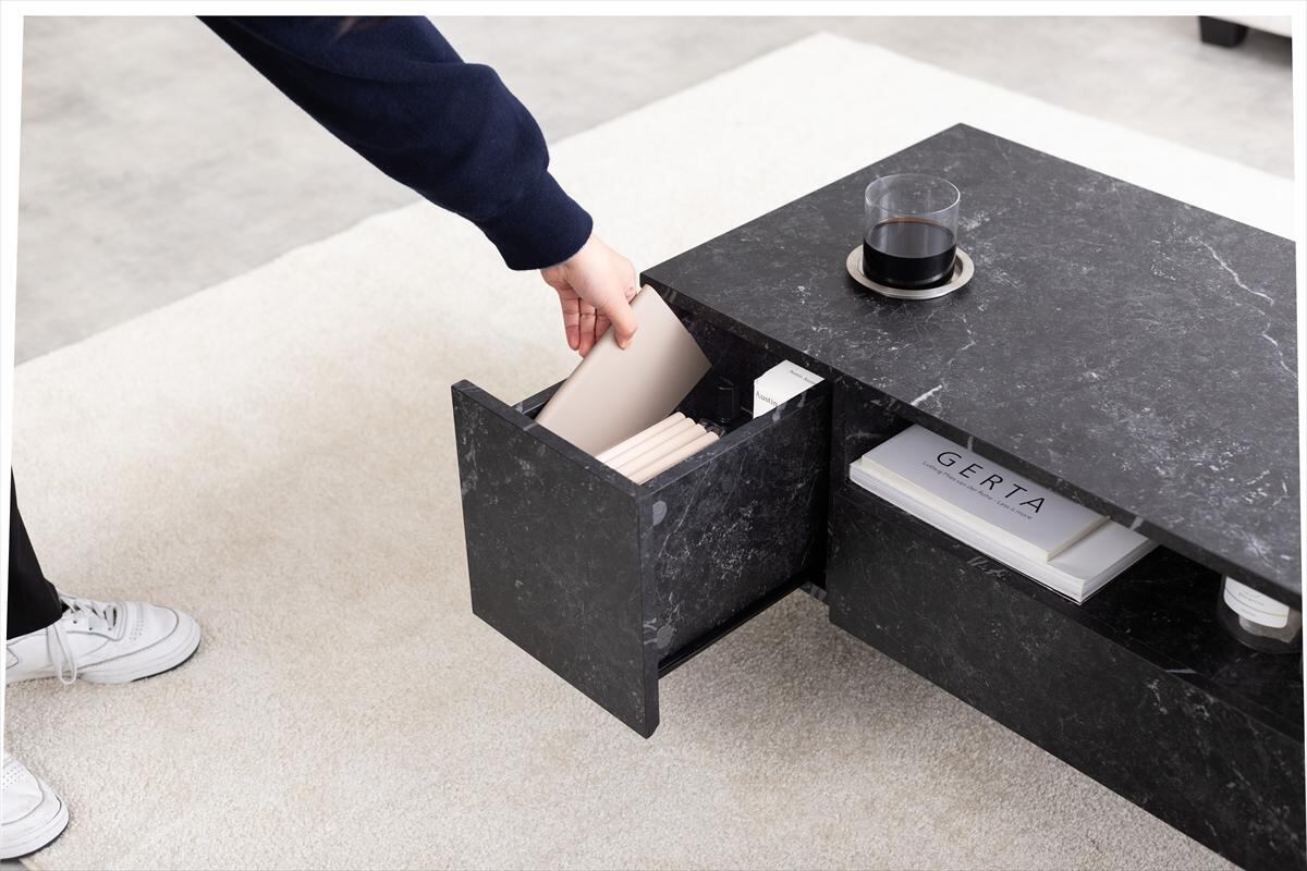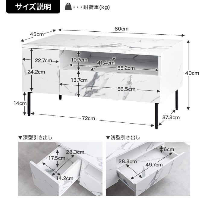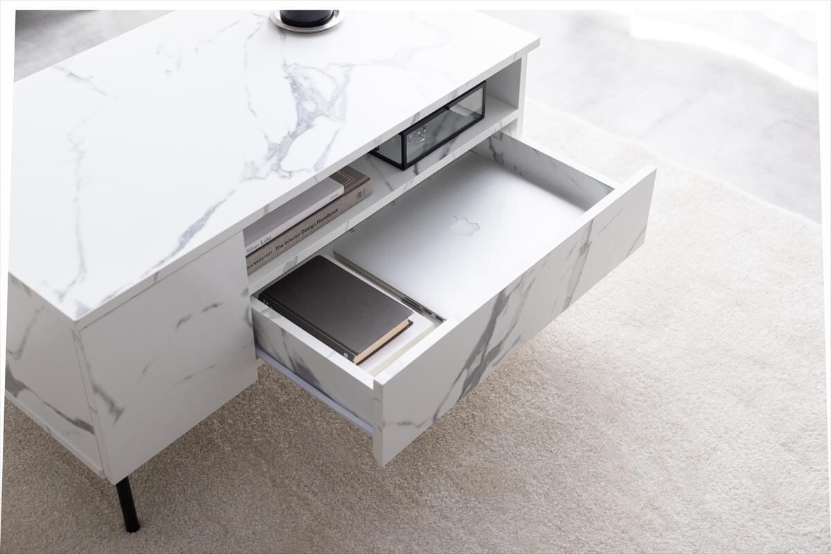 【幅80cm】大理石柄引き出し付きセンターテーブル