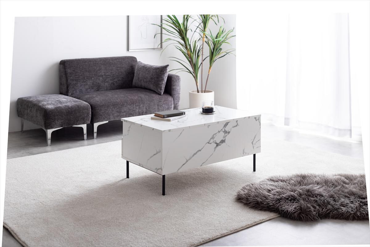高級感漂う大理石調の天板が、リビングを上質な空間に導くセンターテーブル