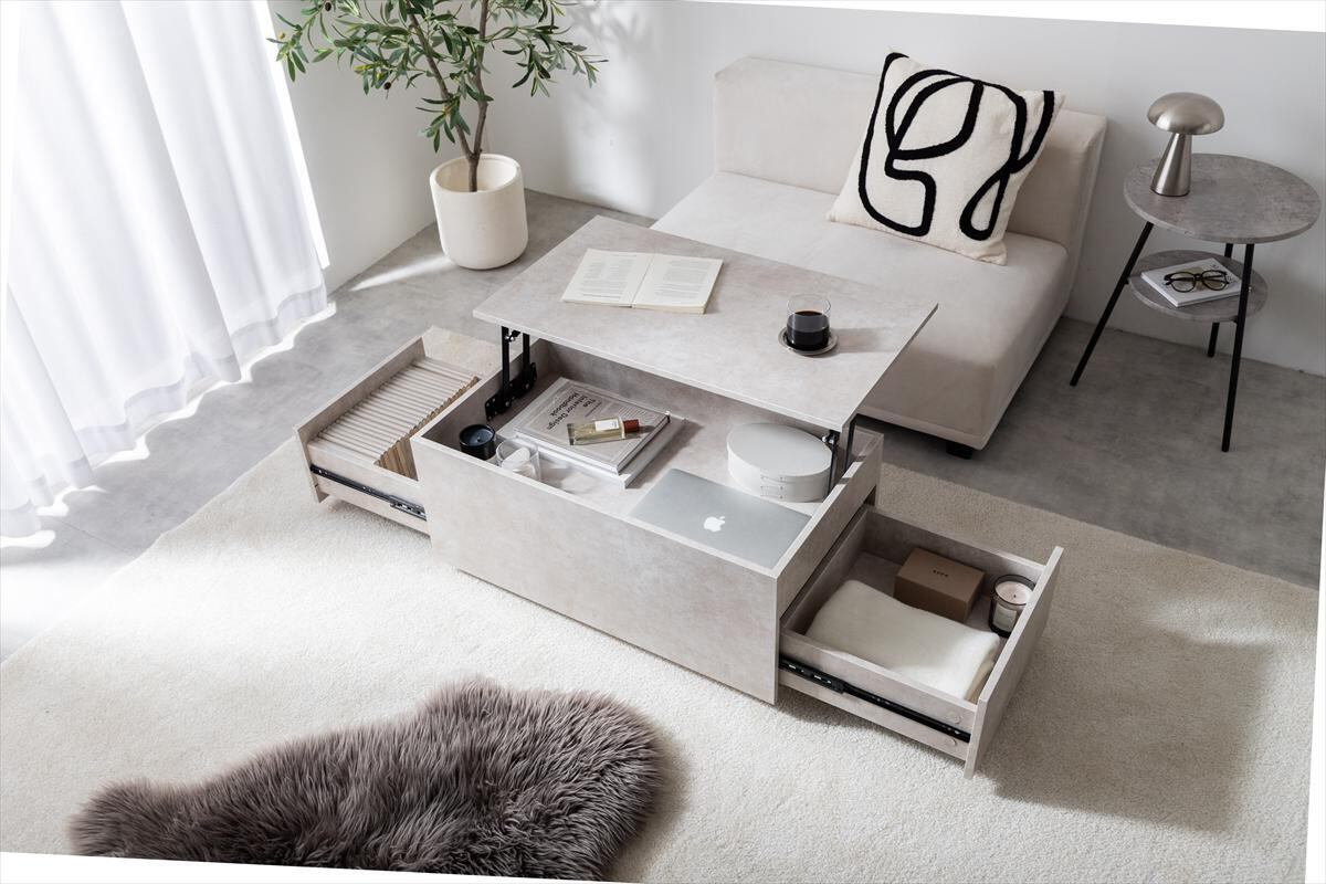 デザイン性と実用性を兼ね備えた昇降式センターテーブル