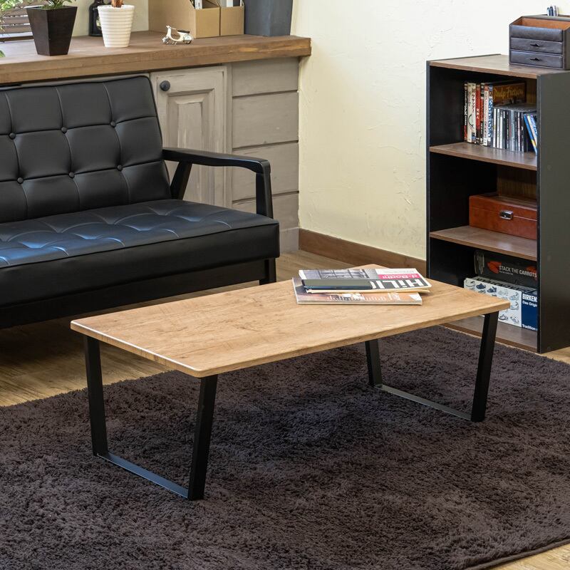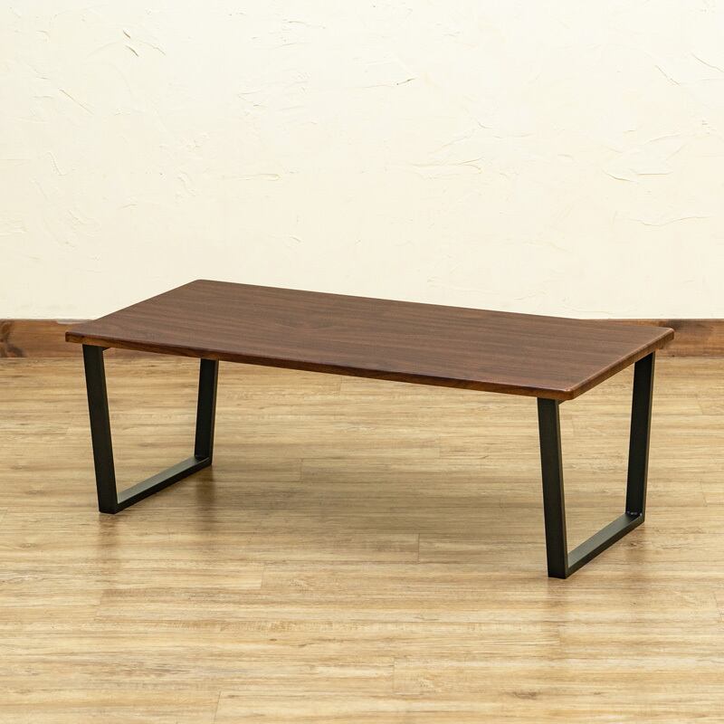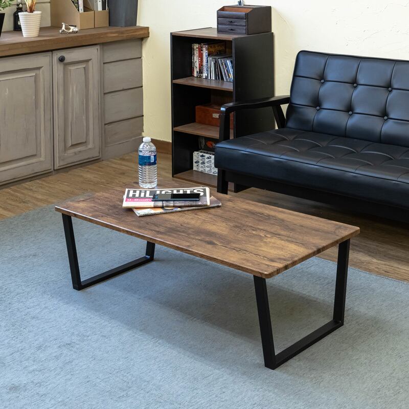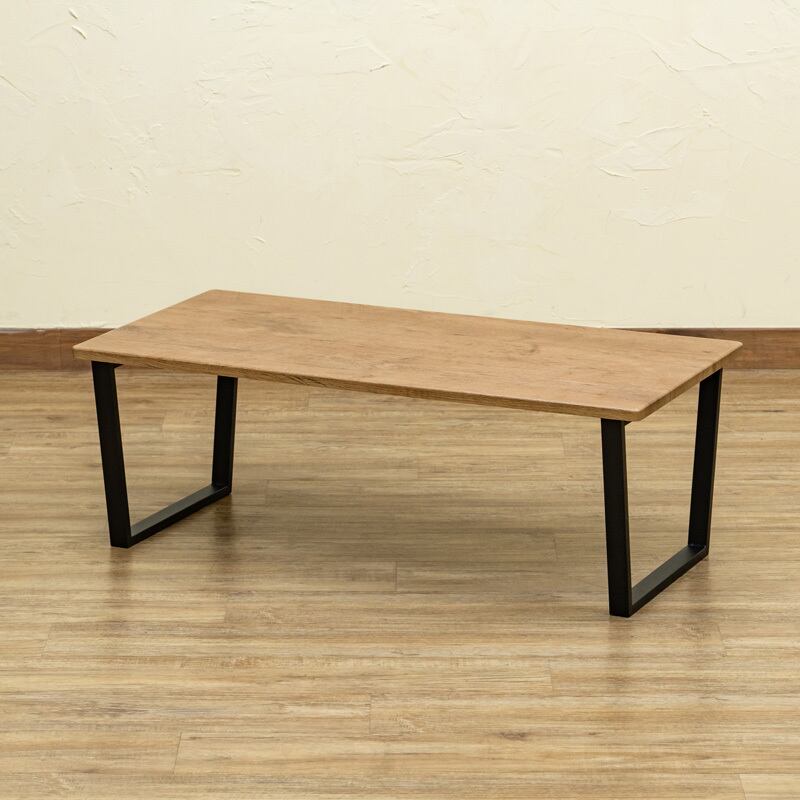 木目調天板とスチール脚の組み合わせの落ち着いたアンティーク調のテーブルです