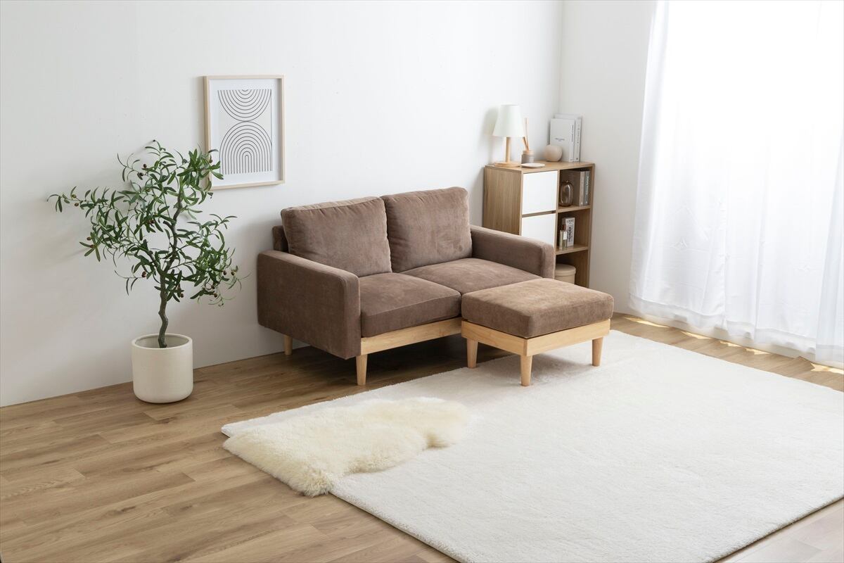 コーデュロイ×天然木がお部屋に上質感を醸し出す『Moss(モス)』2人掛けコーデュロイソファ+オットマン