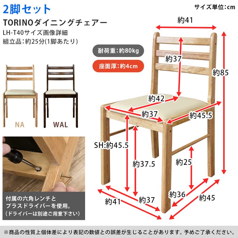 TORINO ダイニングチェア 2脚セット 座面アイボリー NA/WAL