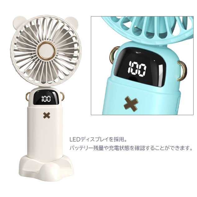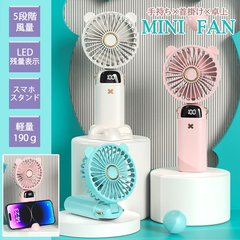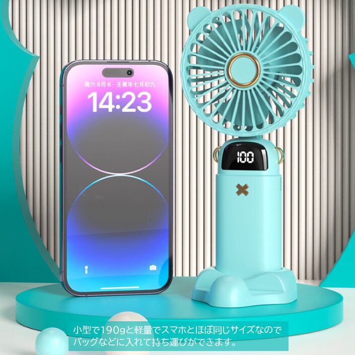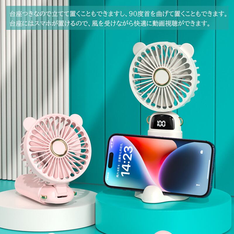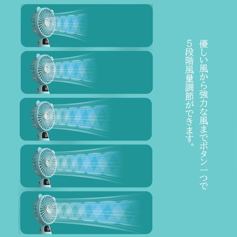 ハンディファン 携帯扇風機 扇風機 USB 充電式 卓上 小型 5段階風量 強風 スマホスタンド 静音