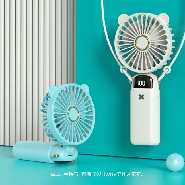 卓上・手持ち・首掛けの3wayで使えるハンディファン